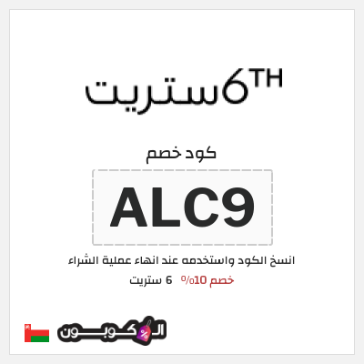 | كود خصم 6 ستريت عُمان | ALC9 |