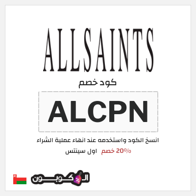 | كود خصم AllSaints 2025 | خصم 20% على المنتجات غير المخفضة | ALCPN |